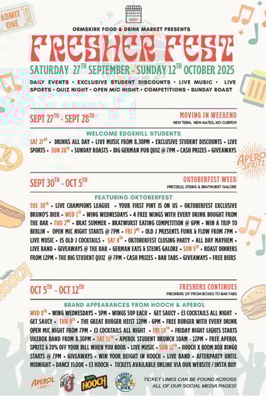Discover Ormskirk's vibrant drinks, food and Entertainment scene today!